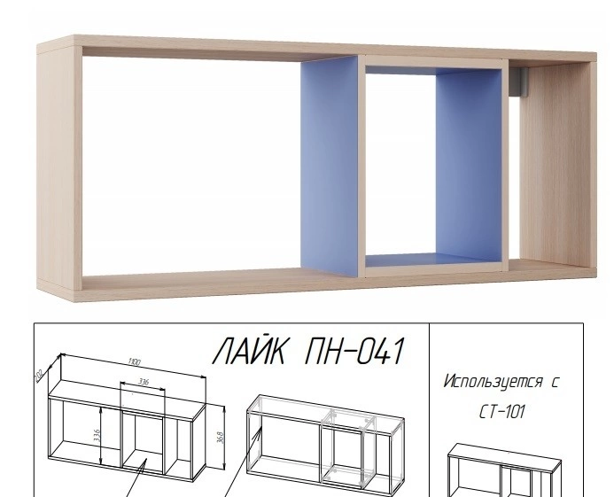 - Полка состоит из внешней конструкции и внутреннего элемента СИНЕГО цвета, который делает полку не только интересной, но и придаёт дополнительную жёсткость конструкции и воспрепятствует прогибу в центре. Полка является универсальной, внутренний элемент может располагаться с любой стороны.
