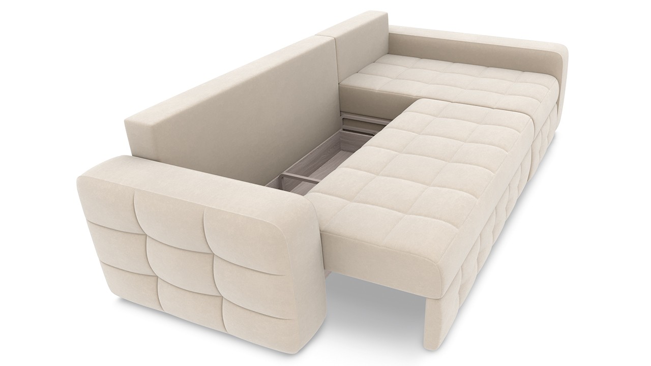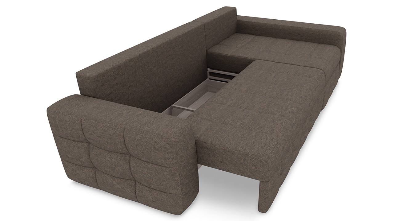 - Боковая сторона дивана имеет ящик для белья, открывающийся при помощи подъемного механизма.