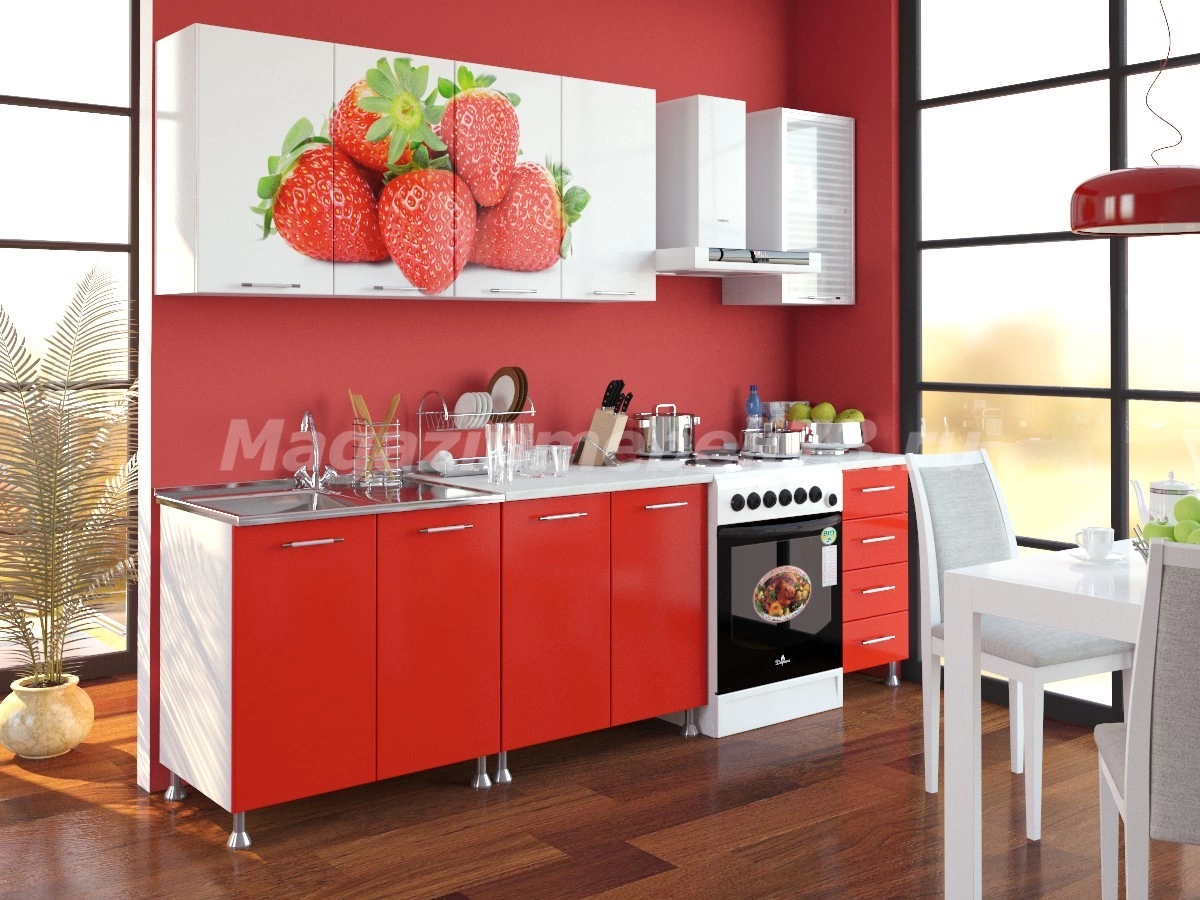 Кухня Виктория ЛДСП 2.0 м это пример кухонной мебели в нарядном цвете с контрастными верхними белоснежными шкафчиками, декорированных горстью крупных ягод виктории. Один из верхних шкафчиков кухни Виктория ЛДСП 2.0 м имеет рамочную дверцу со стеклом в жалюзийном стиле. Модули кухонного гарнитура Виктория ЛДСП 2.0 м стоят на ножках, не закрытых цоколем, легко расставляются в удобном вам порядке. Столешница кухни Виктория ЛДСП 2.0 м выполнена помодульно, на шкаф под мойку не поставляется в комплекте, но можно заказать дополнительно. Вся фурнитура кухонного гарнитура Виктория ЛДСП 2.0 м выполнена в виде рейлингов матового хрома. Помимо хорошего настроения, кухня Виктория ЛДСП 2.0 м порадует вас своей функциональностью и вместимостью.