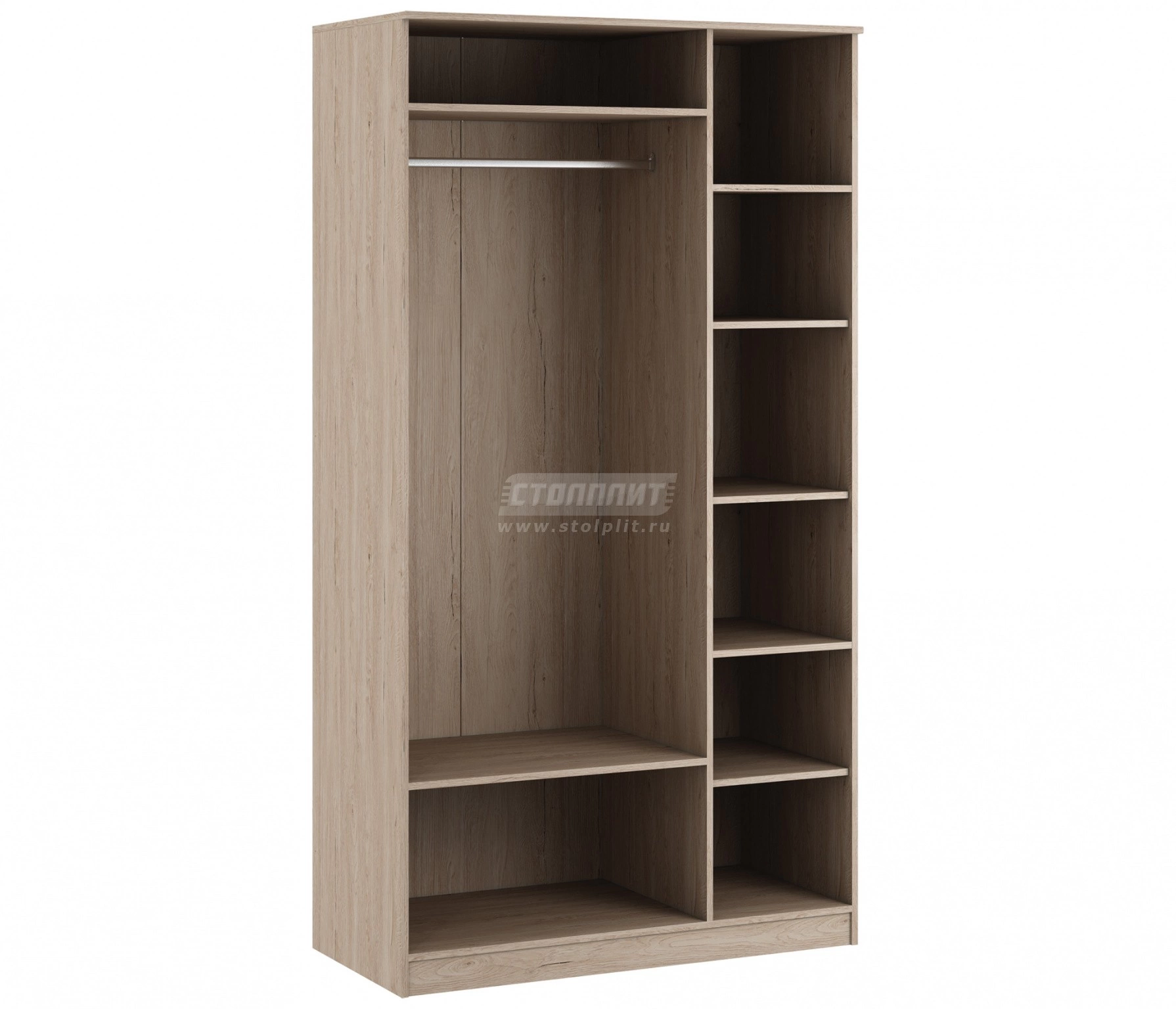 Практичный, стильный и функциональный шкаф из серии модульной спальни «Джорджия». За основу взята нейтральная природная палитра и для яркости образа дополнена контрастной окантовкой фасадов цветом – компаньоном. Внутри шкаф оснащен необходимыми элементами для комфортного хранения вещей. В центральной зоне расположен металлический рейлинг для одежды на вешалках и нижние полки для обуви, в правой зоне глубокие полки размещаются по всей высоте шкафа. Для того, чтобы интерьер не выглядел слишком монотонно, дополните его фактурными материалами (мягкие прикроватные коврики и рельефный текстиль, н-р) креслом сложной формы или небольшой софой, а также цветовыми акцентами, главное, чтобы они гармонировали с основной палитрой.