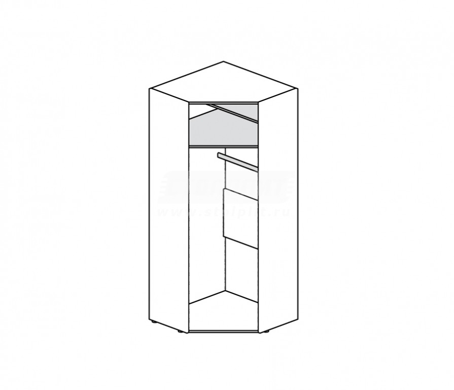 Этот угловой шкаф органично впишется в интерьер современной прихожей. Он отличается на удивление большой вместимостью. В шкафу можно аккуратно разместить одежду и аксессуары. В дизайне шкафа совмещаются контрастные натуральные оттенки.
