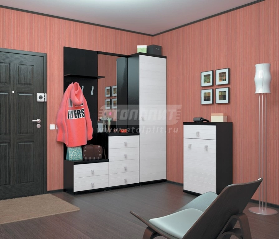 Эта прихожая наполнена цветовыми и геометрическими контрастами, создающими неповторимость ее внешнего облика. Модули гармонично сочетаются по размерам и дизайну, поэтому зоны для хранения одежды и вещей организовываются без проблем. В комплект входит: шкаф с глухим фасадом и одной дверью, два практичных модуля с ящиками, зеркало, функциональная тумба, ряд удобных вешалок и дополнительная полка. Цвет: Дуб феррара/Онденс.Данный комплект включает в себя: