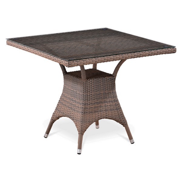 Стол: D90х90xH74 см. Материал: искусственный ротанг. Столешница: закаленное стекло 5 мм, Каркас: стальная труба. Цвет: Pale.