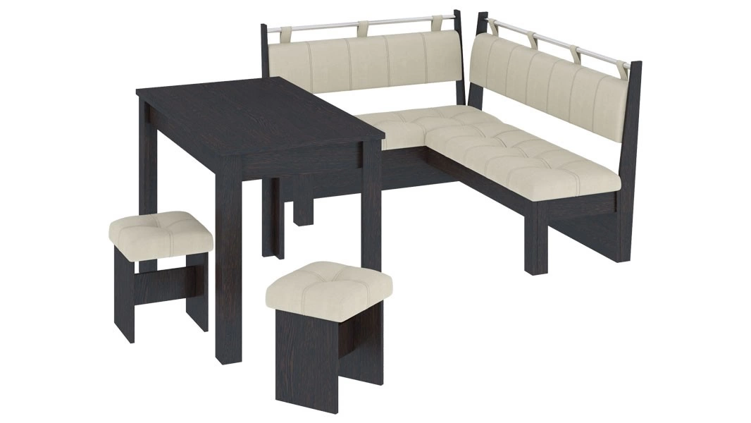 - Обеденная зона "Омега" состоит из удобной угловой скамьи, практичного стола и компактных табуретов.